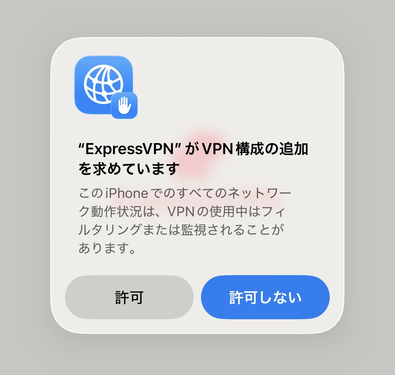 iPhoneの設定アプリのVPNの項目からExpressVPNをオフにすることはできません。
