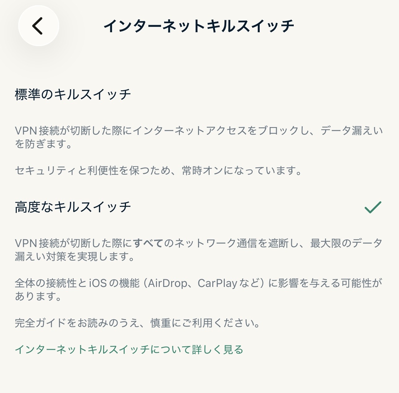 キルスイッチ機能のあるVPNなら、VPNの切断時に他者から接続データを盗まれることを回避できます。