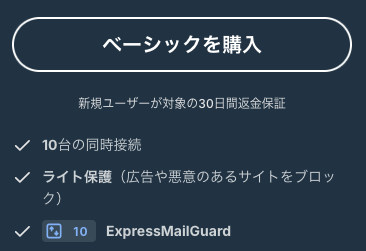 どのプランを選んでもVPN機能のスペックや使い勝手は変わりません。