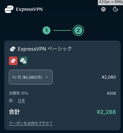 ExpressVPNを契約する場合、1か月プランを選ぶと月あたりの費用は数倍以上になる計算です。