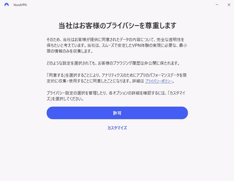 NordVPNアプリの初回起動・ログイン