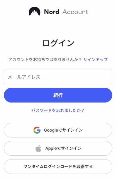 NordVPNの利用に必要なNordアカウントを作成するため、メールアドレスを入力して認証を済ませる。