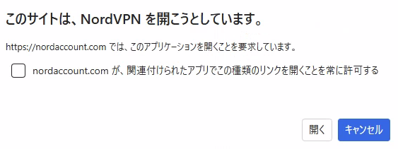 このサイトは、NordVPNを開こうとしています→開く