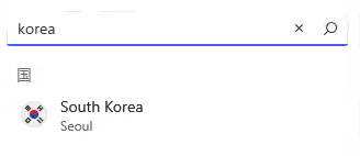 接続を検索の検索窓に国や都市のイニシャルや名前(英語)を入力して選択する
