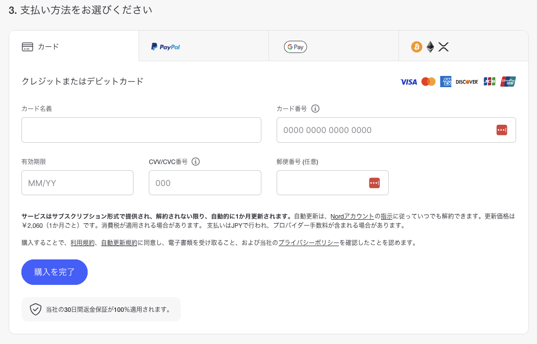 • NordVPNの契約・支払い手続き