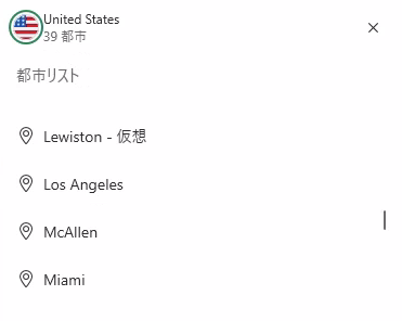 都市リストが表示される場合は、同じ国内の別都市のVPNサーバーに変更できます。