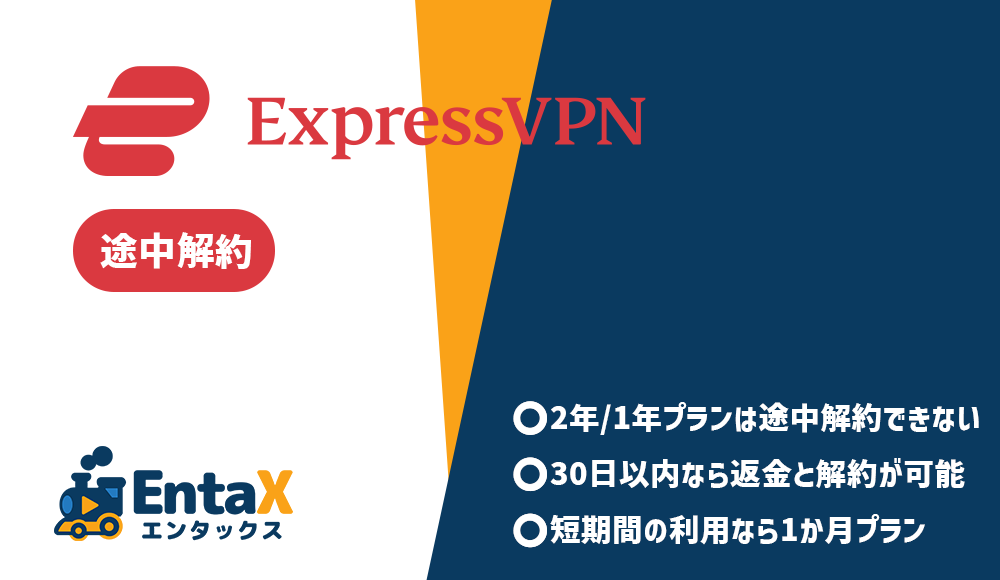 2年プランで契約したExpress VPNを半年間利用したタイミングでVPNが必要なくなったとしても、後から途中解約することはできません。