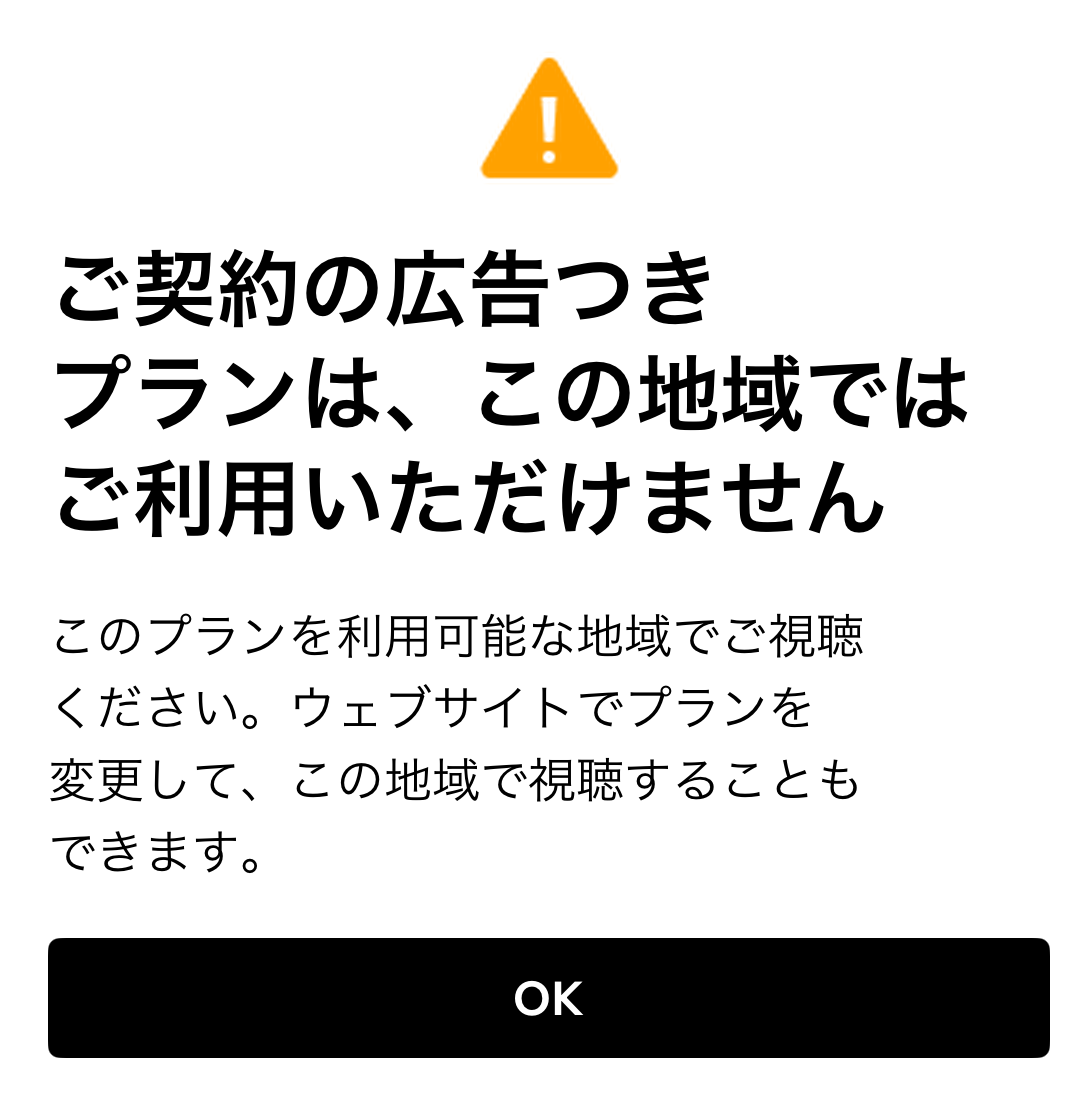 台湾では広告つきプランが提供されていないため、以下のようなエラーが表示され動画が視聴できません。