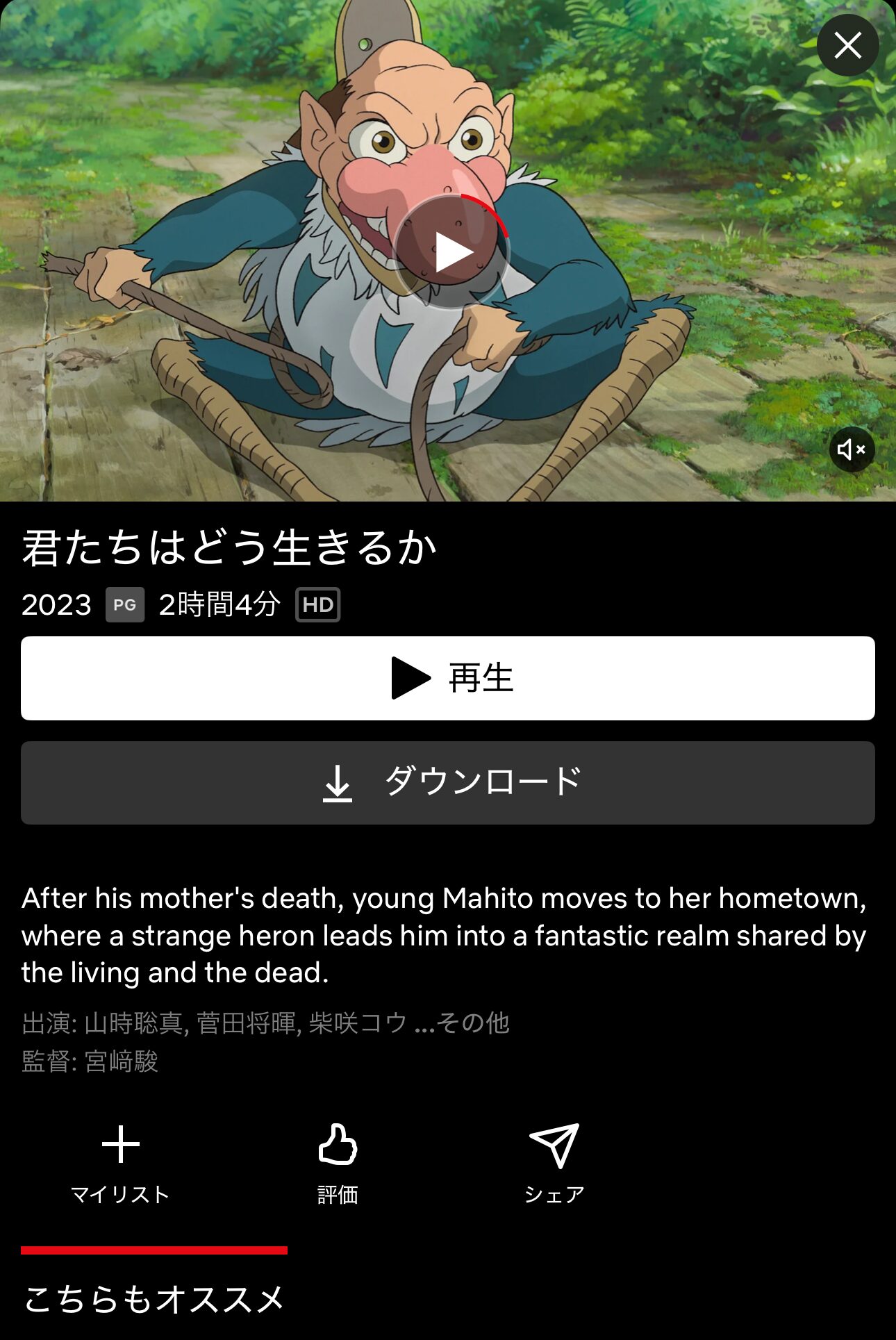 ネットフリックスの作品検索に「君たちはどう生きるか」が表示されない。