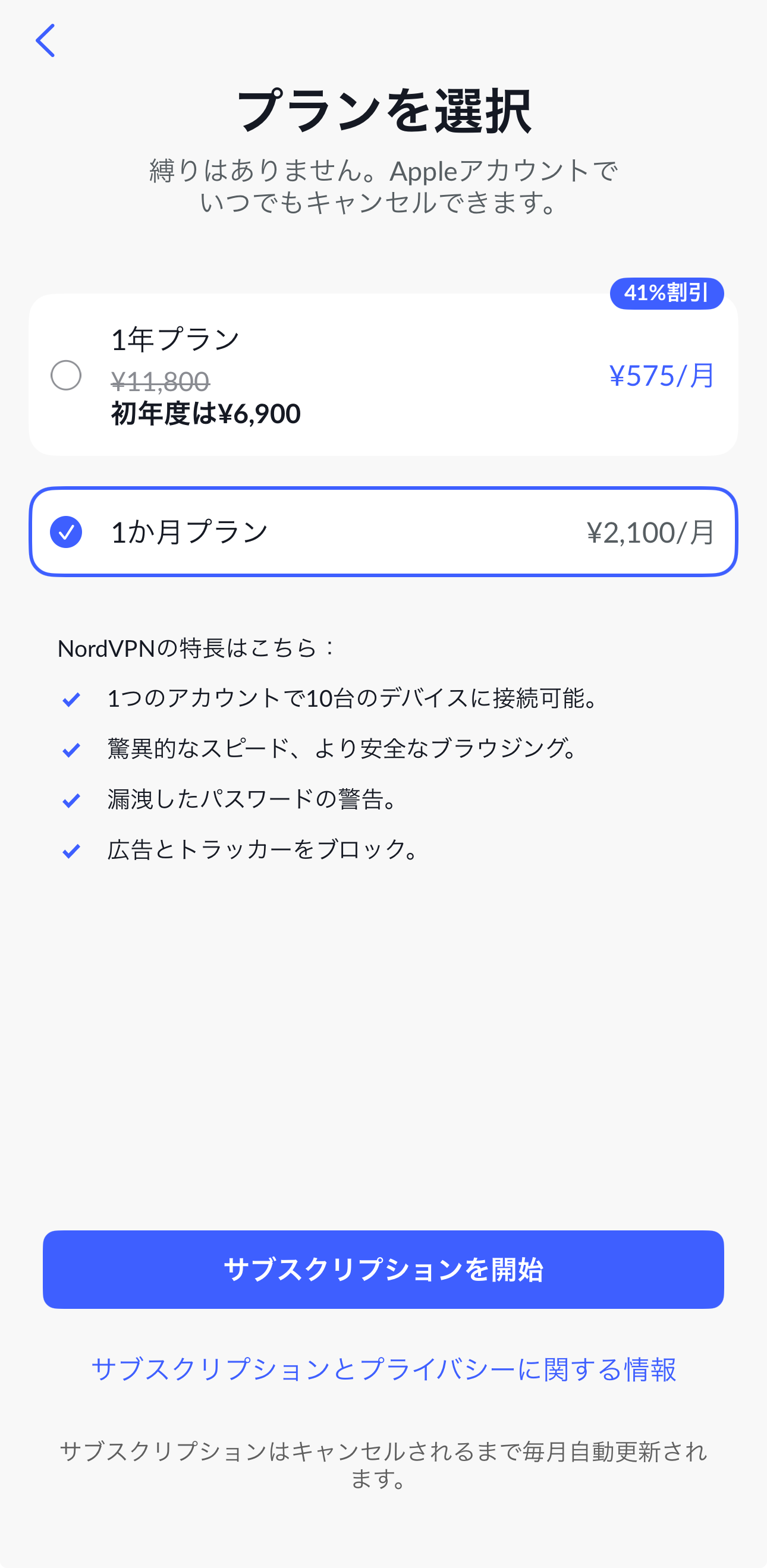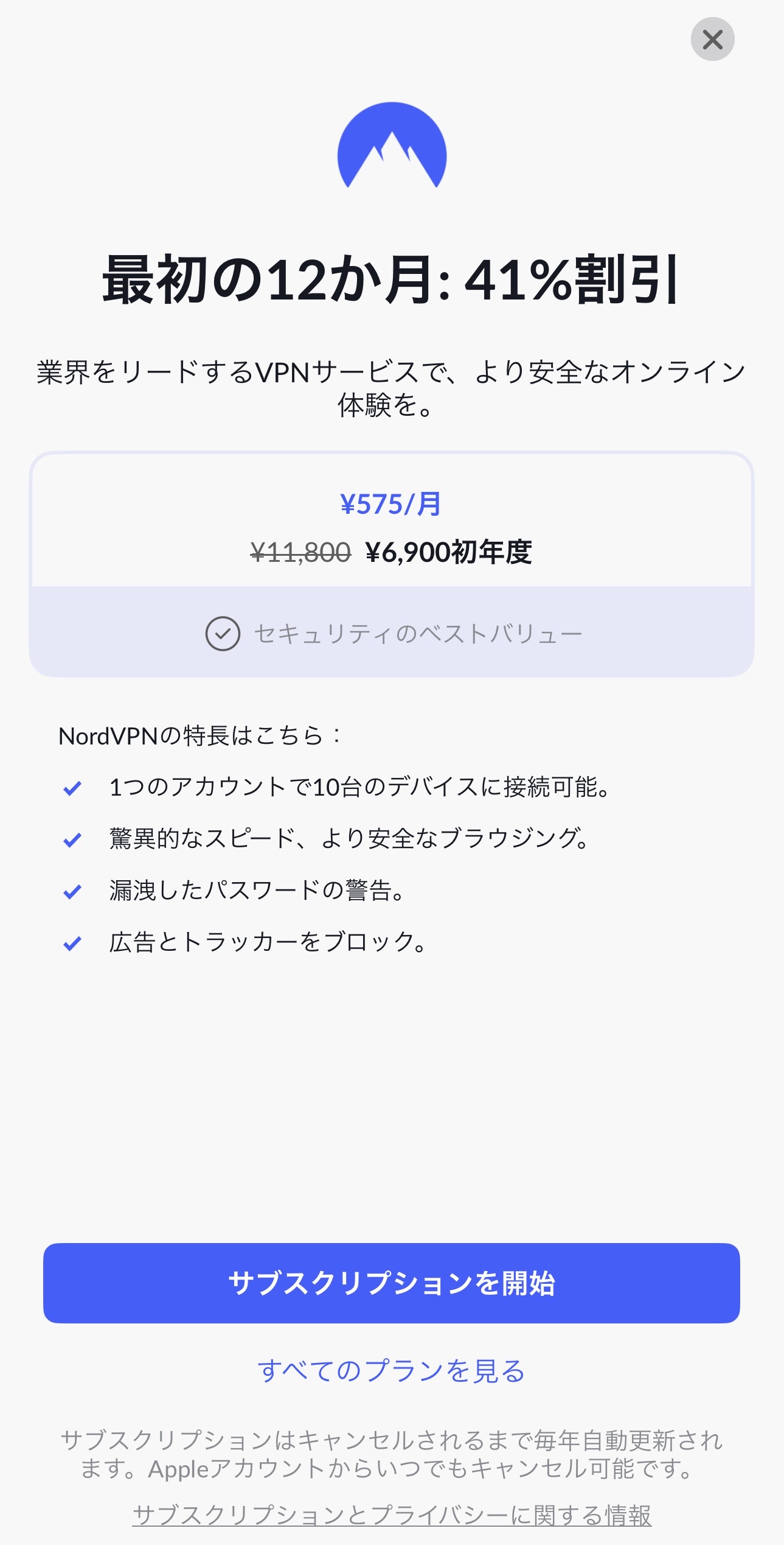 • iPhoneアプリからNordVPNプランを購入する場合、一番お得な2年プランを選べない