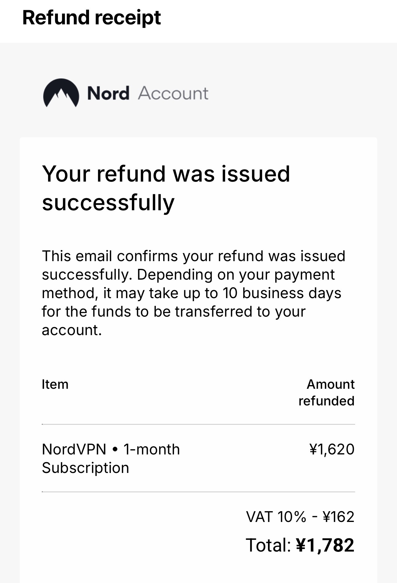 返金リクエストを送信したら、数時間程度で英語の返金完了メールが届いていました。