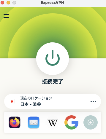 Express VPN Macアプリの操作画面
