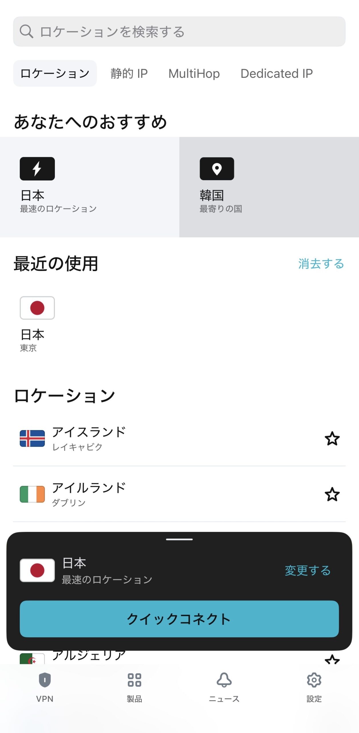 • 世界中のVPNサーバーが利用可能