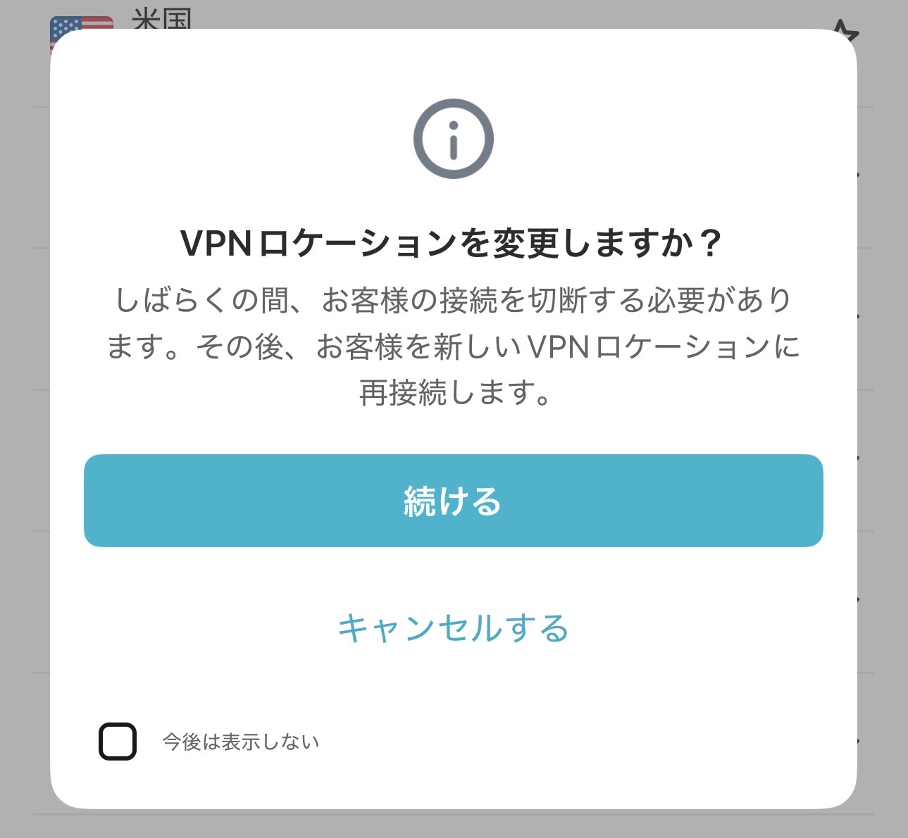 他の国のVPNサーバーに繋ぎ直す