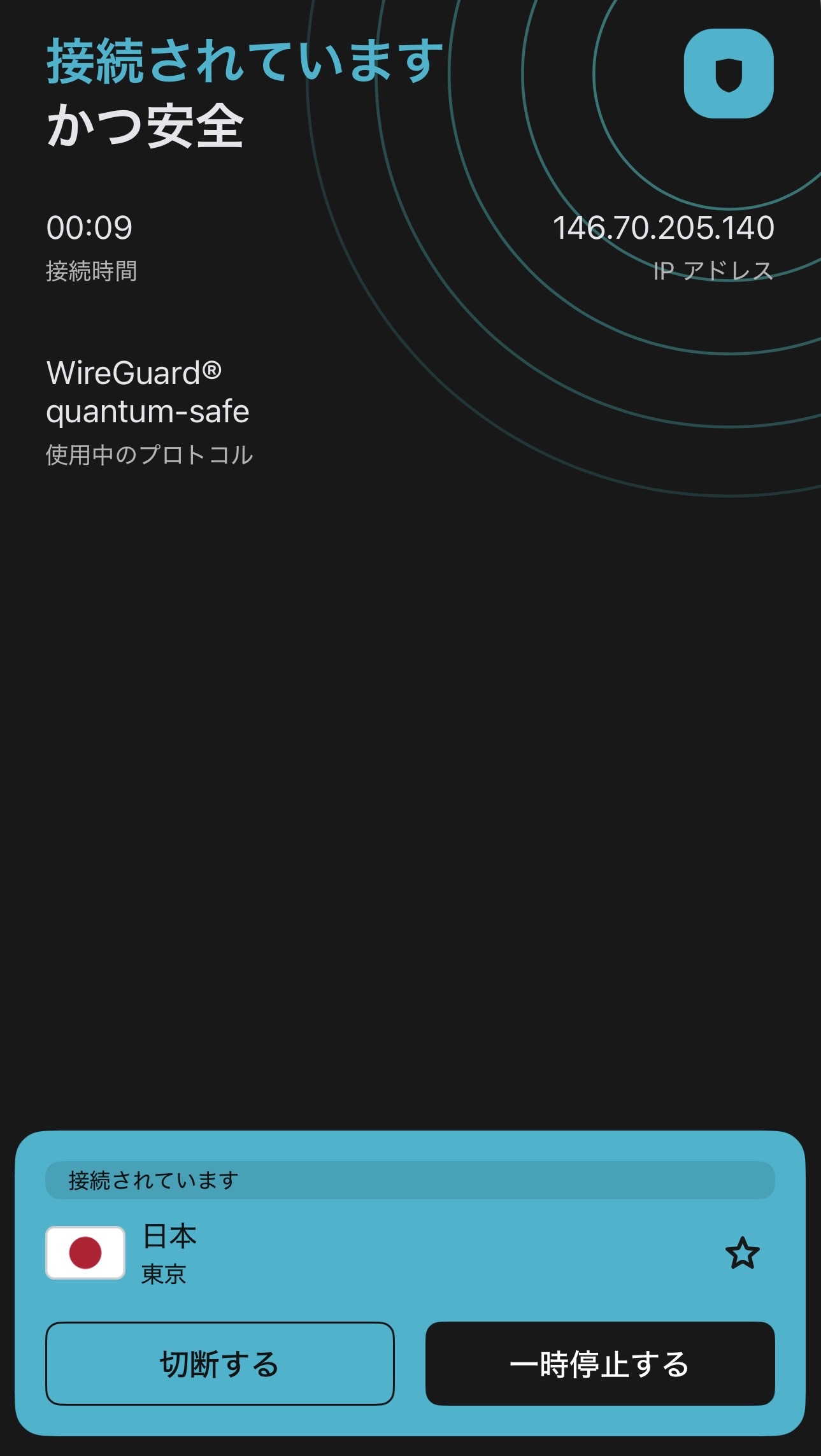 Surfshark VPNアプリを開いて、切断するをタップする。