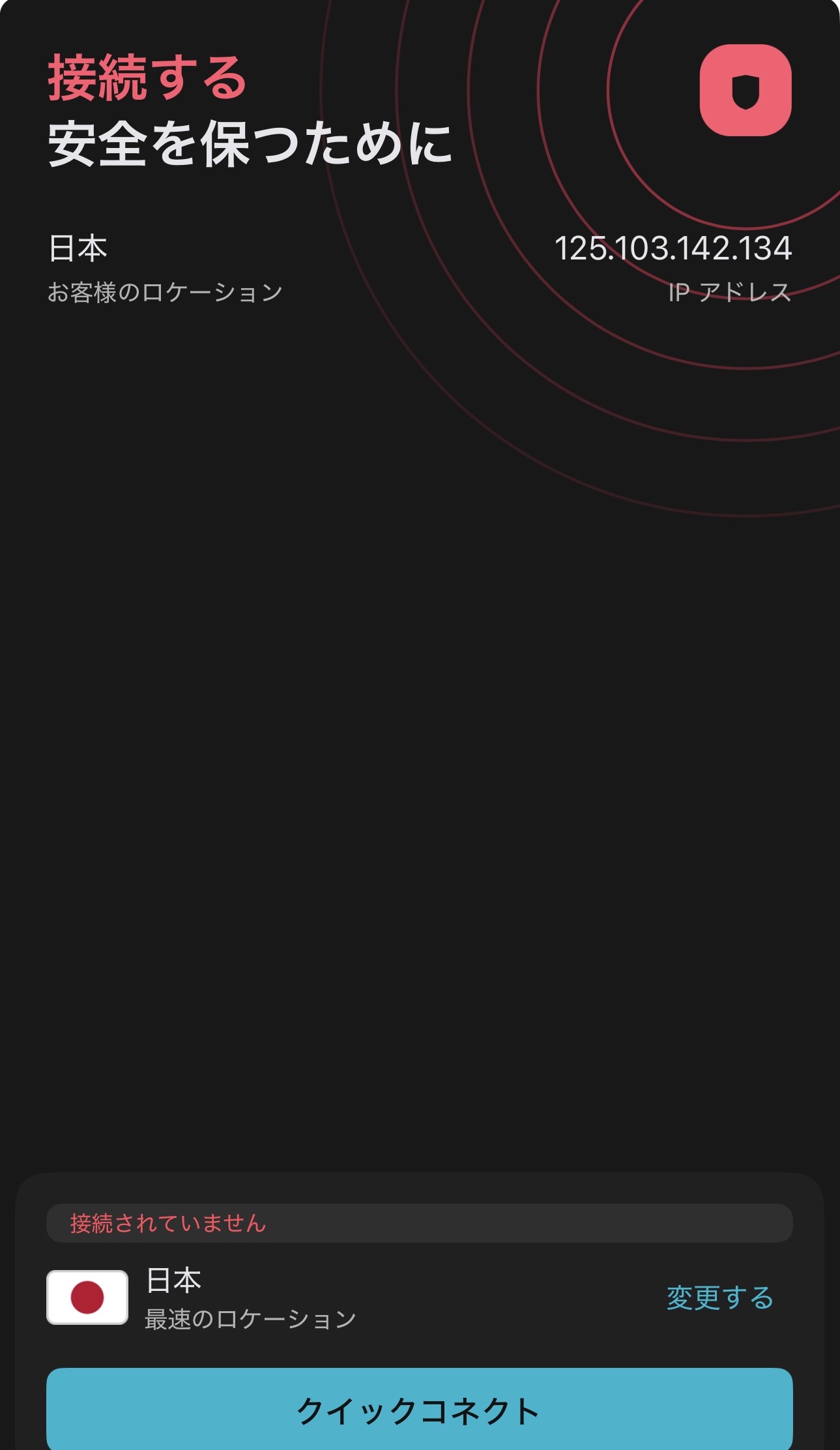 Surfshark VPNアプリを開いて、切断するボタンをタップ