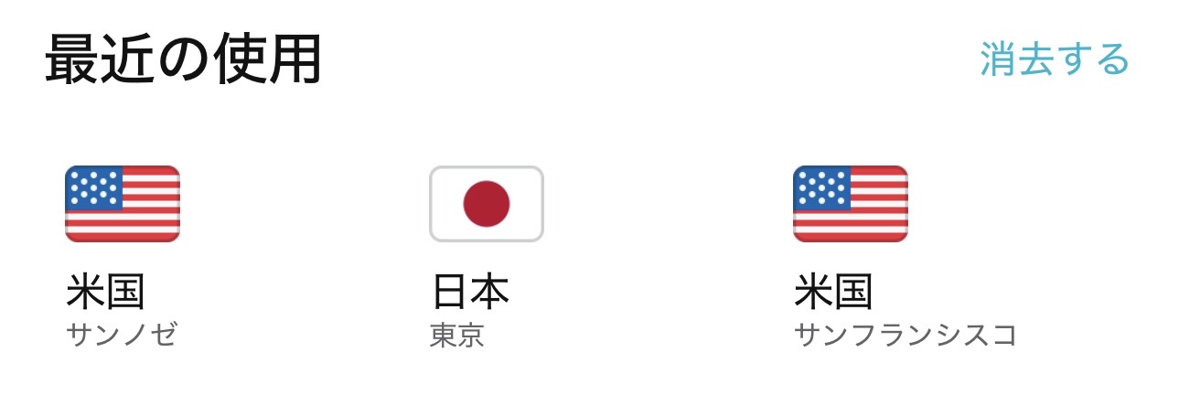 接続するVPNサーバーの国や地域はリストから選んで切り替えることが可能です。