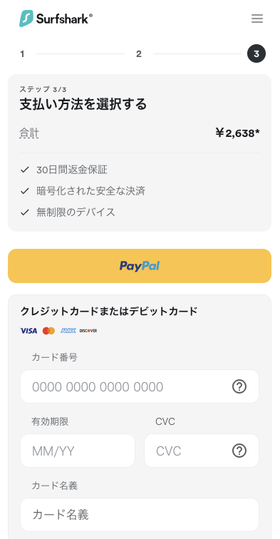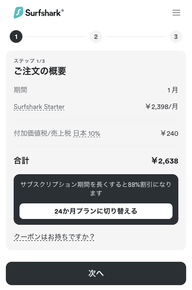 • Surfshark VPNの契約・支払い手続き