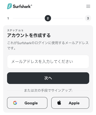 Surfsharkアカウントの作成
