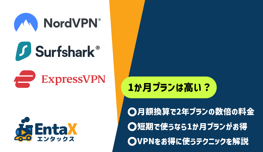 ExpressVPNを契約する場合、1か月プランを選ぶと月あたりの費用は数倍以上になる計算です。