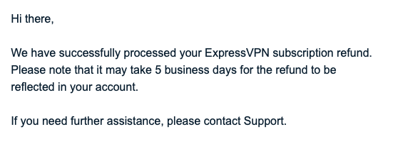 ExpressVPNは契約してから30日以内ならサポートチームにチャットで連絡することで、返金保証を受けることができます。